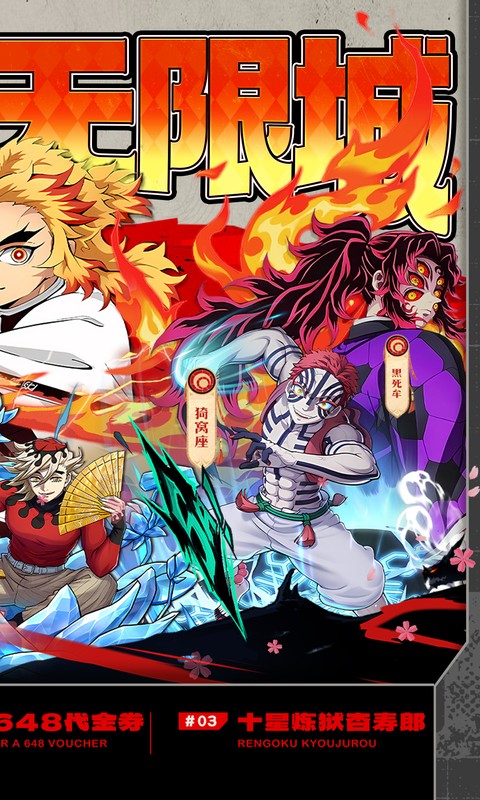 ★【创角福利】:开局就送传说SSR炎柱“炼狱杏寿郎”,高频灼烧,烈系核心输出!
