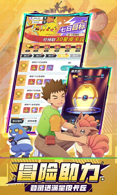 ★【登录送神宠】:登录送满星·满进化·皮卡丘!王牌搭档轻松养成!