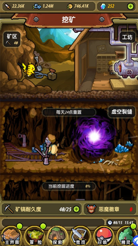 探索新玩法如挖矿等,带来不同的乐趣,获取资源以培育你的精灵。