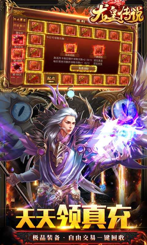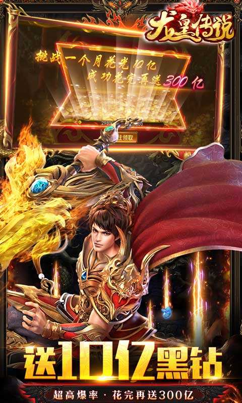《龙皇传说(10亿0元购)》超变传奇手游,单职业设定,公平开局,杀怪装备全回收,真充签到免费送,单刷一切BOSS,超高爆率,上线就送10亿黑钻,花完再送300亿!超炫的技能,极致的快感,既有当年的热血战斗和兄弟情谊,又增添了属于新时代的超爽快节奏,前所未有的成长和装备等玩法等你体验!既可以兄弟同行,更能一人一刀一宠,开启属于你的龙皇传说,天下尽在掌握之中!