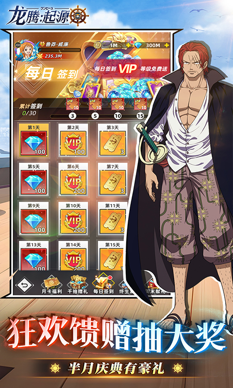 【龙腾:起源】:0.05折海贼王,一款3D海贼王题材卡牌游戏,3D海贼真实还原,再现场景剧情重温。开服八日送SSR,签到好礼送VIP,冒险闯关送千抽,狂欢馈赠抽大奖。精美的3D人物建模,再现多位经典海贼,满足收集欲需求,多种阵营属性,自带个性技能,超多阵容随意搭配,轻松掌握海贼战斗的乐趣!