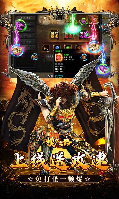 《摸金之路》是一款超爽超爆的攻速单职业版本,上线就送:背包全开、顶格仓库、自动捡物、自动回收;杀怪、寻宝、其余都能获取真实充值点,拒绝假福利假红包!打怪获取历练点,兑换海量道具货币!上线领取变速齿轮攻速嘎嘎快,怪物爆率高 一怪一专属;BOSS探查功能,随时查看定点BOSS刷新状态,踏实安心不漏怪!七日登录循环送30元充值!福利送不停!更多优惠豪礼等你来体验!