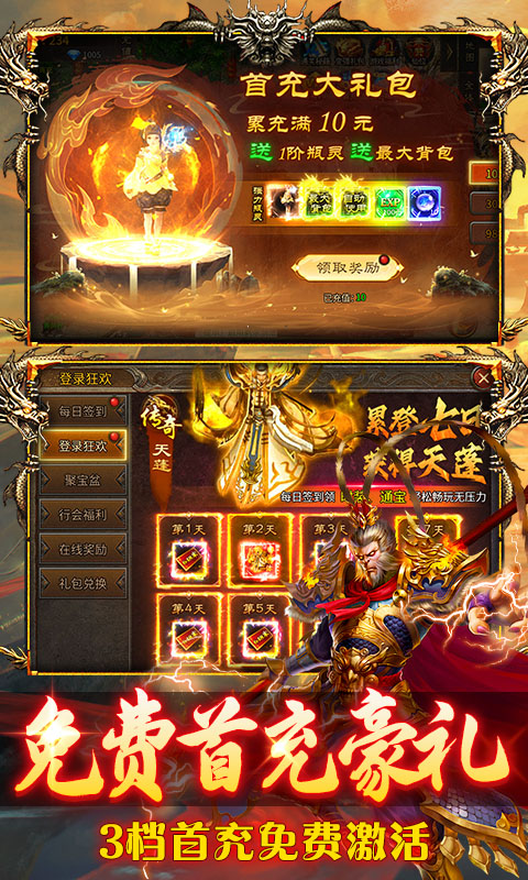 ★【免费福利】:免费赠送3档首充礼包!