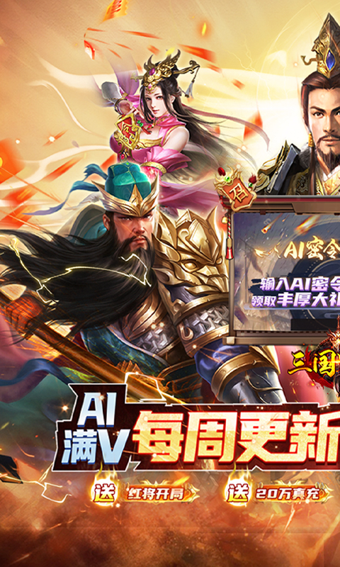 三国跑跑(无限密令AI版)是一款全新三国策略手游。还原三国战争场景,告别粗暴数值对撞,体验丰富策略玩法!不限国家自由搭配武将,提供组建一个全将有用的策略空间!三国乱世,群雄逐鹿,大战在即之时,佛系种田或是狼系掠夺?兵临城下,排兵布阵,集众联盟以御强敌!招募武将谋士,助力问鼎天下!大兴科技城建,增进实力,攻城掠地!不拟真三国沙盘,各路名将集结,搭配多变战法,克制兵种,以少胜多。上线即送满V,GM1,顶级红将吕布,GM刷充特权,首充、月卡、无限资源、基金全部免费送,推图征战送真充,一直推图一直送,天天可换真充卡,保持每天登陆还能获得一万神石和二十万真充。登录2天送顶级红将周瑜,登录8天送顶级红将许褚。每天送10次豪华宴请,神将无限抽。