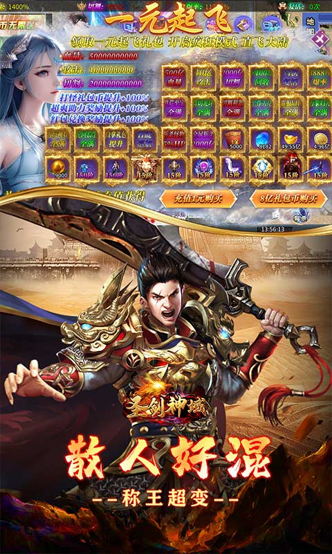 上线就送超级冠名,全屏拾取,自动回收,千倍爆率,首充大礼等等超绝豪礼!新超变,新玩法,不同体验,绝对带感!操作简单,玩法多样,直购币更是爆满地!散人好混,属性平衡,超多BUFF,时间就是一切!超级副本,超强神力,亿万攻击,亿万血量带你体验极致的数值体验!