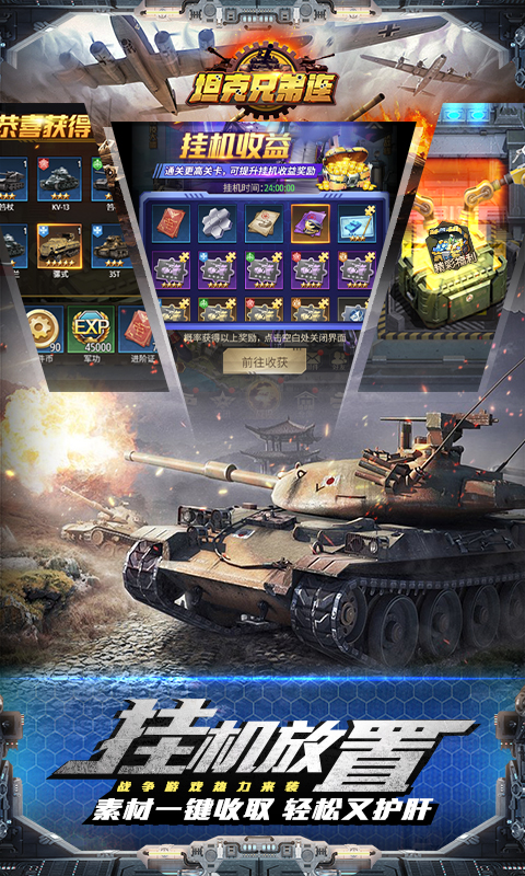 《坦克兄弟连》是一款融合卡牌养成、放置挂机玩法,以军事坦克为主题的策略挂机类手游。游戏内数百种经典坦克搭配不同武器技能,让你感受耳目一新的策略战斗。更有双人竞技、陆空联合作战等特色玩法,满足指挥官你的一切期待!在《坦克兄弟连》的世界当中,你可以领会到军事题材的独特魅力,也能享受到挂机类游戏的休闲乐趣!