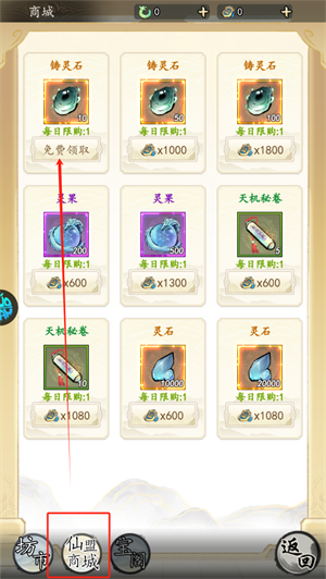 4、商城里的“仙盟商城”可以每日免费领取铸灵石