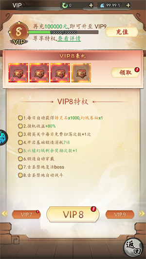 3、领取vip1-vip8的所有奖励