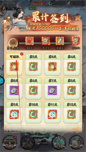 2、然后点击右上角“累计签到”,领取累签奖励