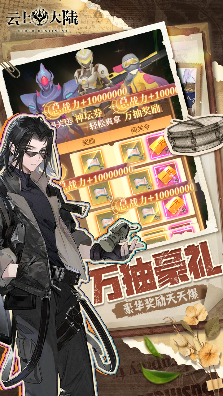 奇幻云上世界的冒险之门已开启,福利狂欢同步上线~《云上大陆红包版》不仅有登录就送的专属红包,开启即得海量钻石与养成材料,折扣福利版更享全商城道具低至1折特权,珍稀圣灵、极品坐骑无需高价入手。3D奇幻画风勾勒浮空大陆盛景,放置挂机机制解放双手,离线也能积累资源,让你轻松化身冒险者,与精灵、矮人并肩作战,抵御龙族与兽人的入侵,在探索与激战中解锁属于自己的云上传奇。