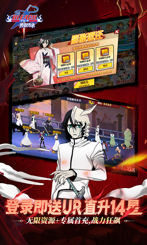 ★【九日福利】:9日登录UR角色直升14星,连续闯关、签到送双倍千抽豪礼!