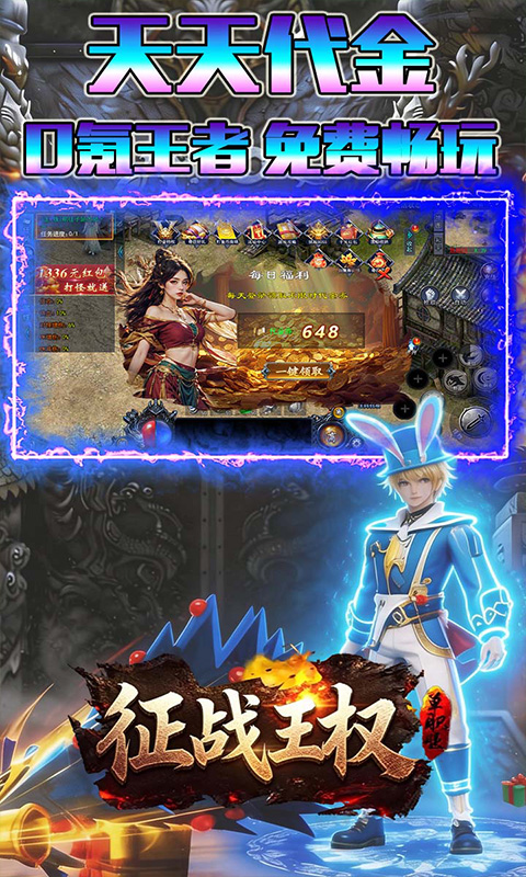《征战王权》这是一款传奇游戏,实现满级攻速效果!升级装备全靠打怪,满级装备不是梦,助力勇士火速提升!传奇霸主,骨灰回归!续写当年经典传奇练级、打怪、PK竞技等特色,还融入更多核心玩法,十二生肖、神兵、异宝、星辰、天书、等养成系统,助您打怪效率暴涨!BOSS任意击杀,炫酷连招效果开放全爆率!
